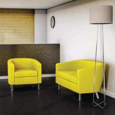 This sofa seating range comes fully upholstered in a wide range of materials to choose from and comes with a separate seat cushion and is fitted chrome legs