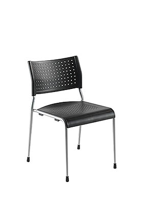 This polypropylene chair is supplied in black with an upholstered seat and comes with a silver frame