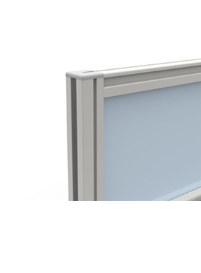 Trinity Desk Mounted Screen – Fully framed panel 30mm screen thickness with clear acrylic top section available in 10 colours (Violet, Red, Plum, Orange, Green, Zest, Blue, Glacier Green, White or Grey). Supplied with integral linking strip.