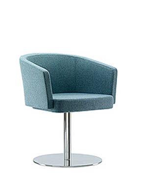 This fully upholstered armchair is available in a wide range of materials to choose and comes with polished chrome or aluminum base.
